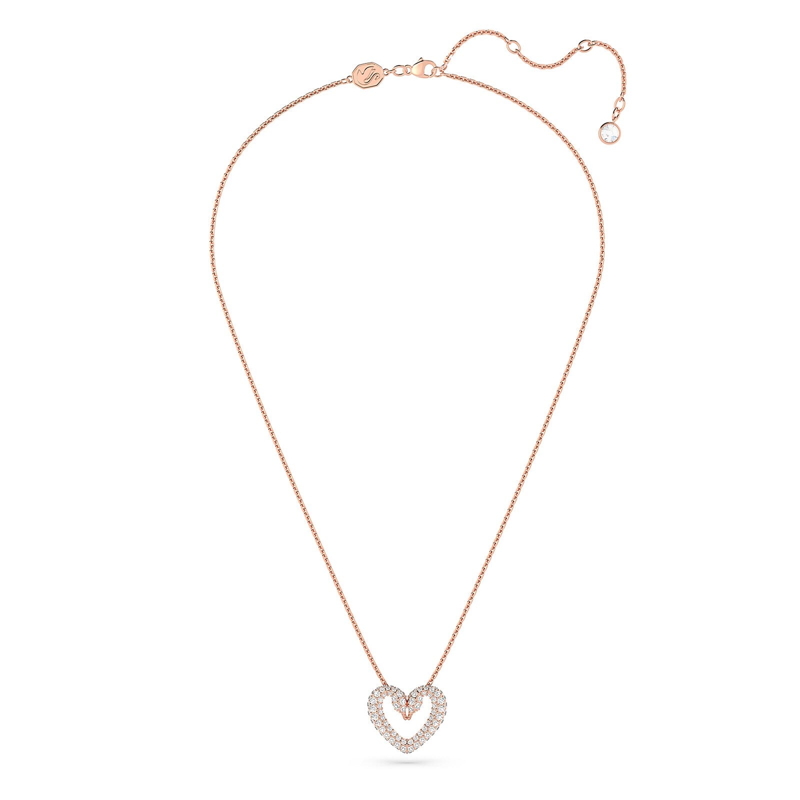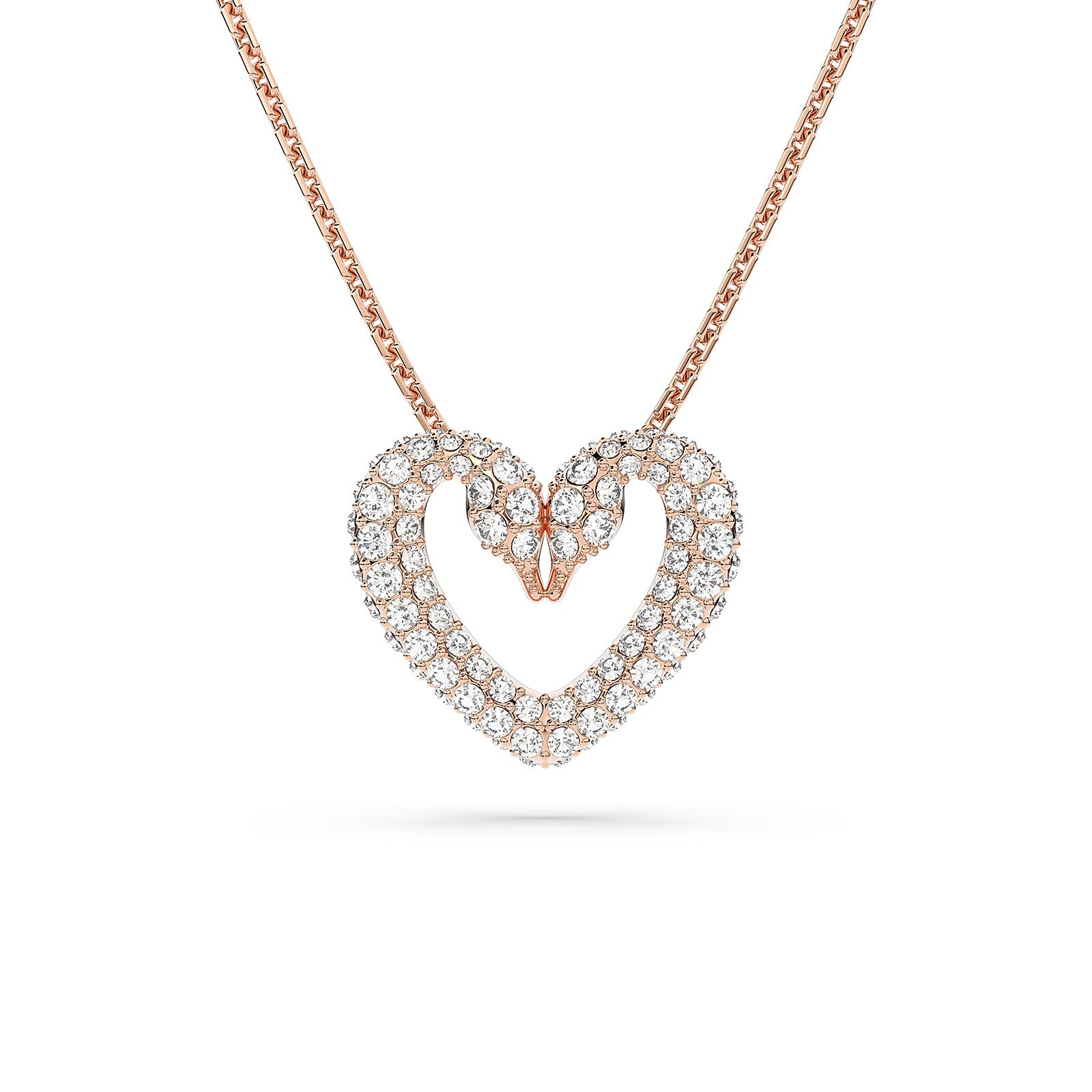 Embodying the beauty of nature with its double swan design, this delicate, heart-shaped pendant symbolizes the power of eternal love – and a new beginning for the Swarovski swan emblem. It features refined pavé crystals set against a rose gold-tone plated chain. A timeless and radiant choice for your everyday wardrobe. This pendant is part of the Una Family, designed for Collection III.