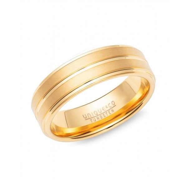Gents Tungsten Gold Plated Ring 7mm Size 64