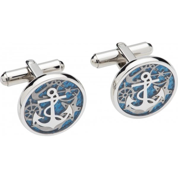 Stainless Steel Anchor Cufflinks with Blue Enamel
