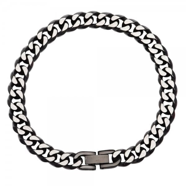 Crafted in stainless steel, this chunky curb necklace features an eye catching black IP plating. The necklace is finished with a brushed clasp fastening engraved with the Unique jewellery logo. Pair with similar items from the collection to complete your