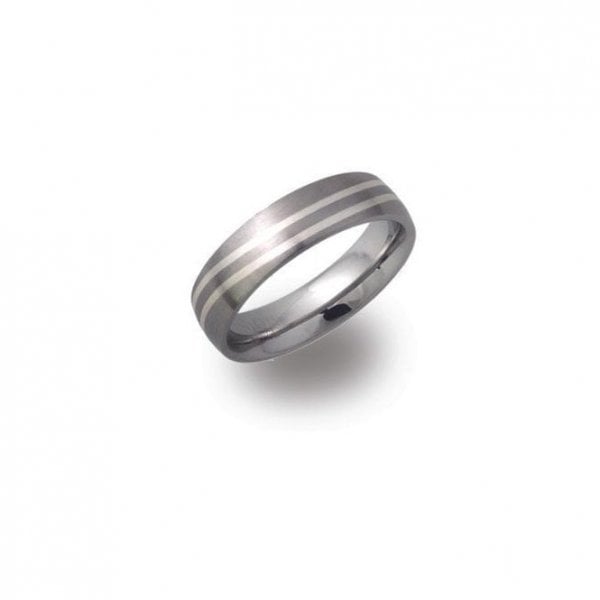 Steel Ring With Silver Inlay